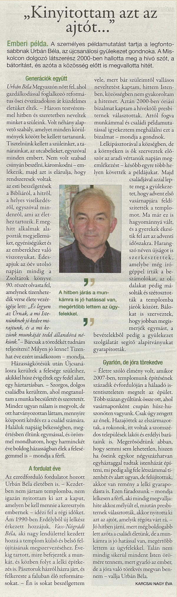 meg a hívó szót, a bátorítást, és azóta a közösség előtt is megvallotta hitét.